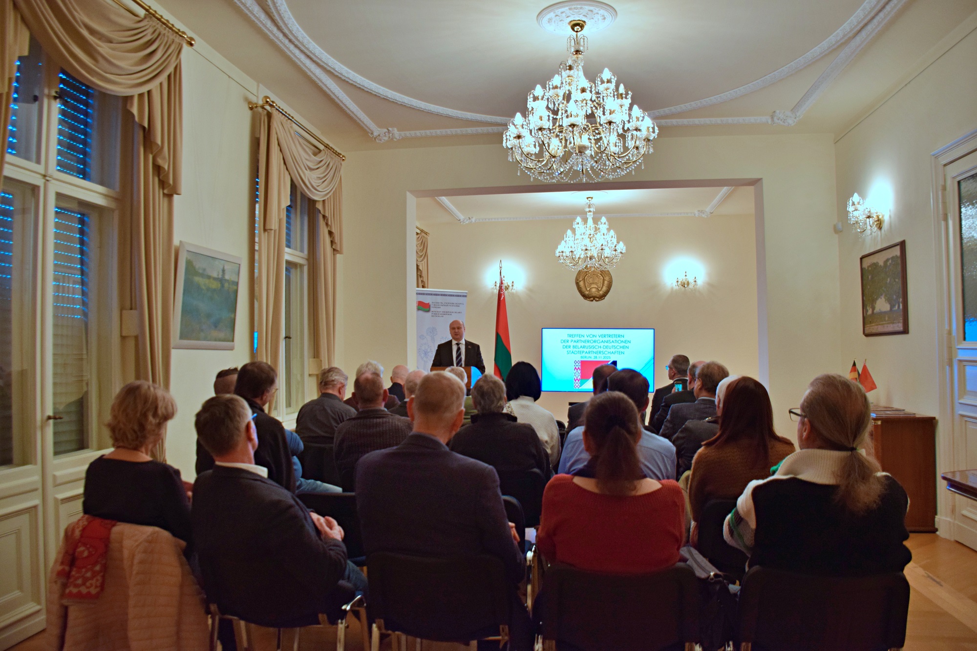 02.12.2025 г.28 ноября 2025 г. в Посольстве Республики Беларусь в Федеративной Республике Германия состоялась традиционная рабочая встреча немецких активистов побратимского движения и межрегионального сотрудничества между Беларусью и Германией. Участие в мероприятии приняли более 30 представителей немецких партнерских организаций.